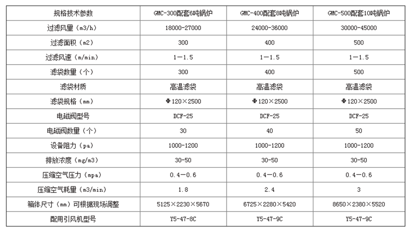 常用鍋爐除塵器技術參數(shù)
